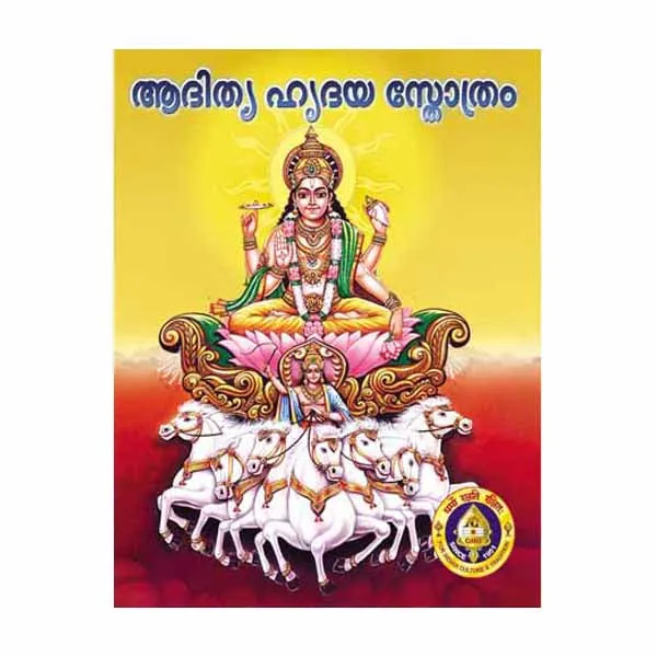 Sri Aditya Hrudayam is sung in praise of Sri Surya. These hymns are available in Srimad Ramayana in 107 chapter. It was given as a upadesha to Sri Rama by Sage Agastaya just before the commencement of Rama Ravana Yudha. Sri Rama by chanting the sloka was able to win over Ravana. Worshipping Sri Surya with this stotram has multiple benefits. Worshipping Sri Surya one gets health and wellness and the malefic effects in horoscope gets warded off.This book also has among many rare slokas like surya namaskaram, ekasloka navagraha stotram, sakshopanishad etc. Comes in an handy size with bold print in Malayalam fonts.