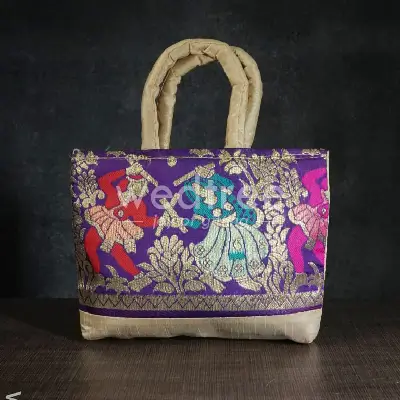 If you need a ravishing design at affordable rate, this piece of handbag made of raw silk material will verily be satisfying. Raw silk has its own innate beauty and lustrous finish. This design comes with Dandiya dance prints all over totting up the beauty.