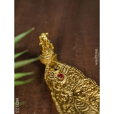 Here is an adorable Agarbathi stand that you’d love to have at the shrine in your home. It has got a luxurious golden finish with a Ganesha, and in a leafy pattern. It can toss abundance of elegance to your shrine!