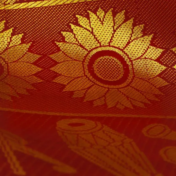 With a beautiful jari / zari embroidery, the trinity shines through with a golden glow in the fabric.